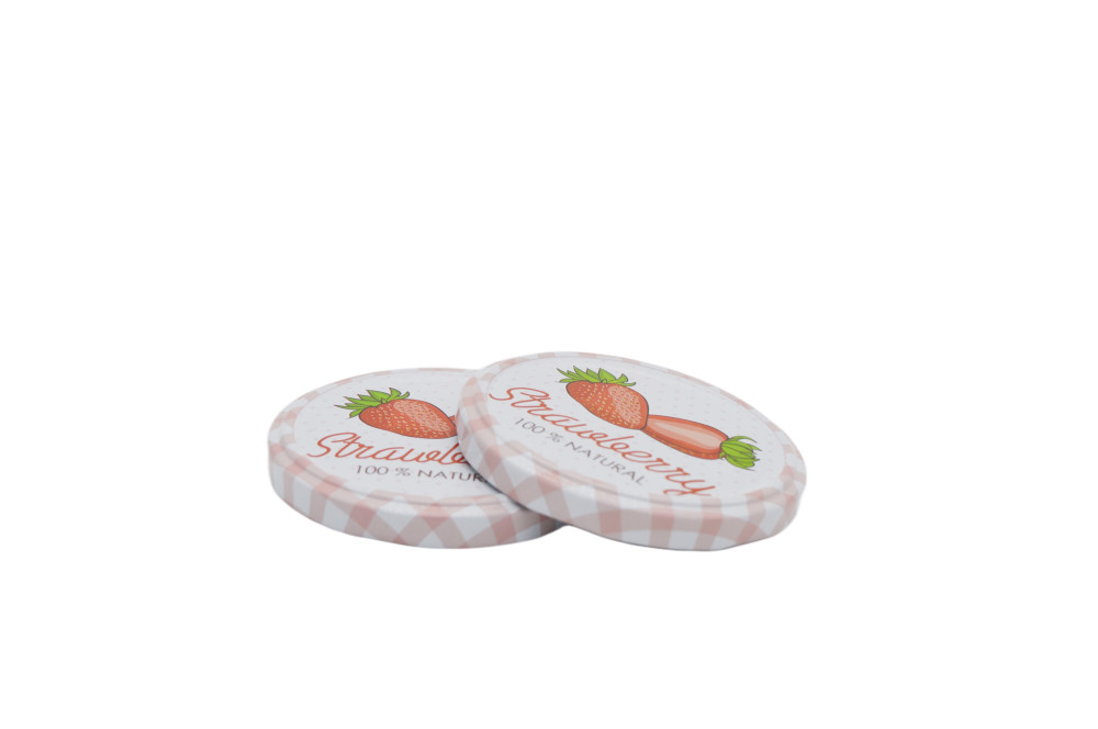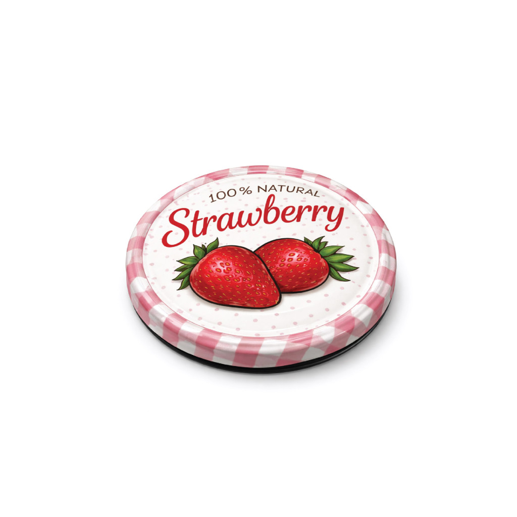 Vrchnák na plechovku veľkosť 82 - jahodový vzor