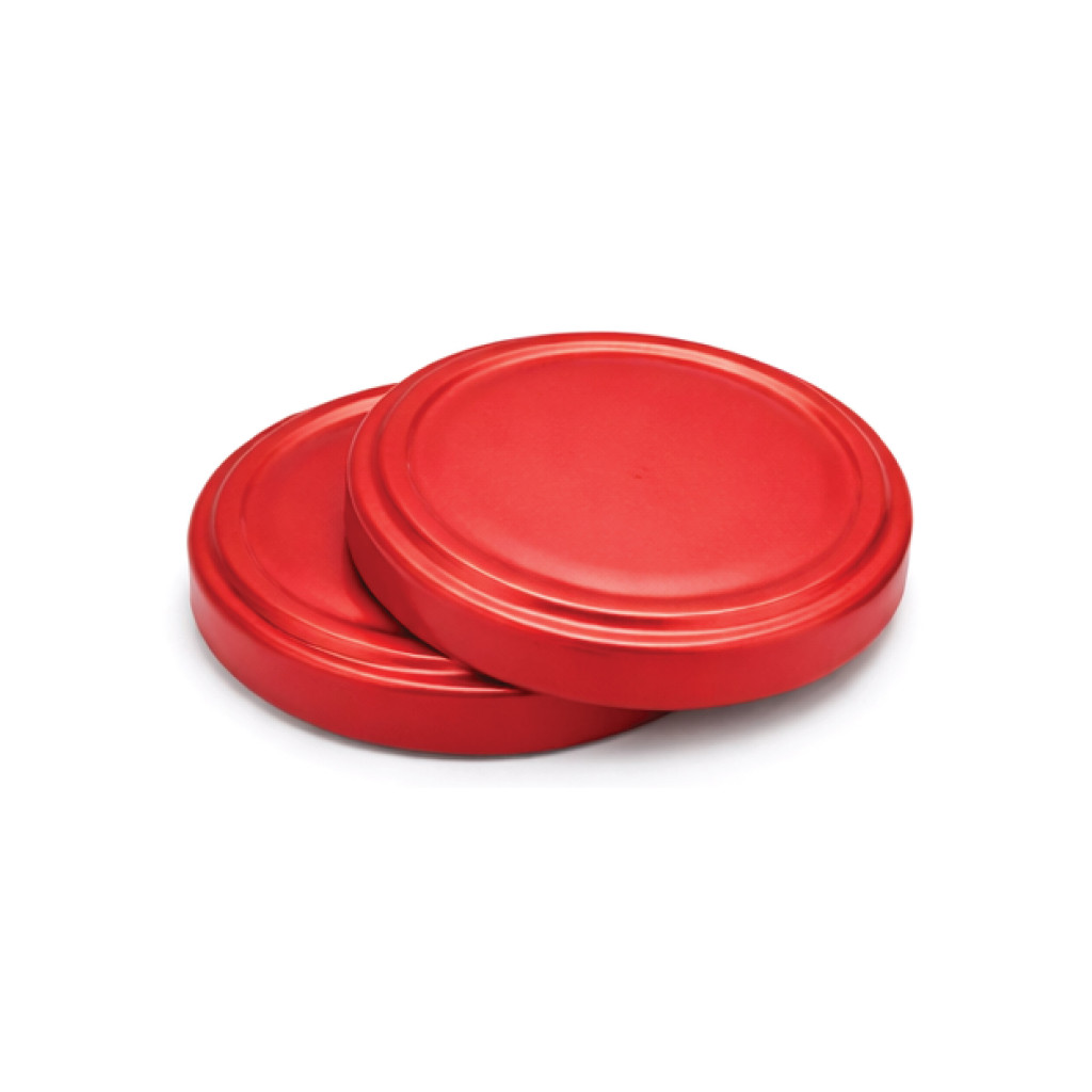 82 plechových viečok - červených